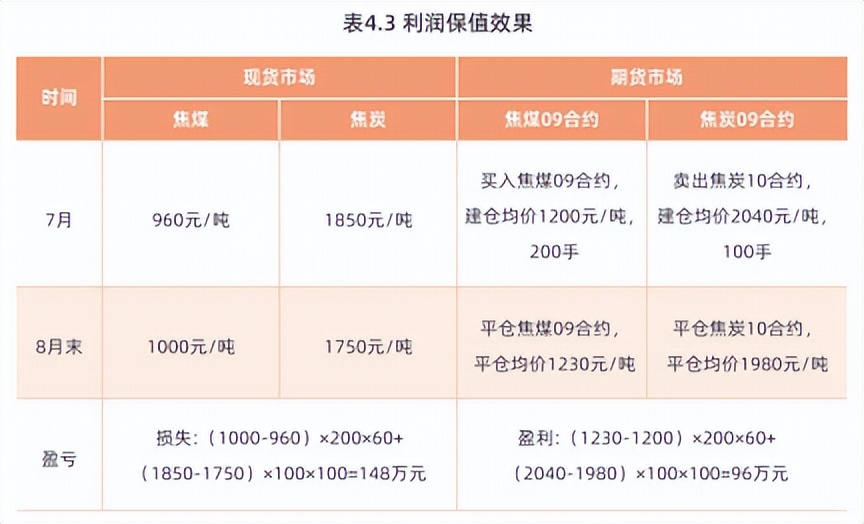 该企业通过期货买入保值,规避了焦煤原材料价格上涨的风险,期货端盈利覆盖了现货端成本的上升。