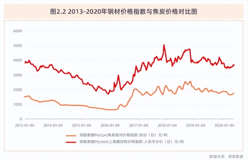 从焦炭消费构成分析可知,钢铁工业是焦炭最主要的消费领域,因此,焦炭消费高度依赖于钢铁工业的运行,钢铁价格与焦炭价格高度相关,详见下图。