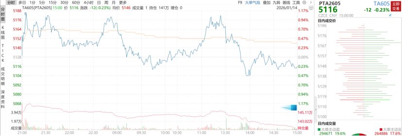 华东地区PTA市场中间价为5,060元/吨,国内现货价5,100元/吨,期货升水现货。
