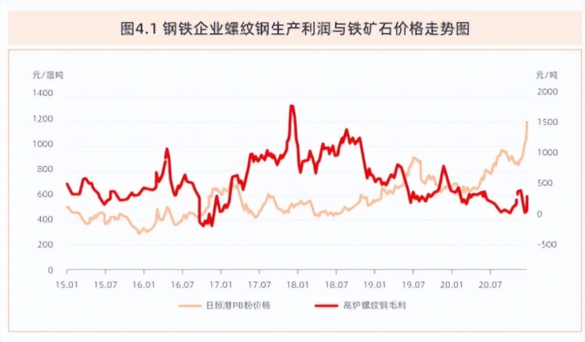 某钢铁企业4月末的生产利润达到800元/吨,利润尚可,由于其产品螺纹钢需求即将进入淡季,而铁矿石价格因供应紧张暂未出现停止上涨的迹象。该钢厂担心铁矿上涨和螺纹钢下跌同时发生,挤压钢厂利润。因此计划利用衍生品工具进行利润保值。