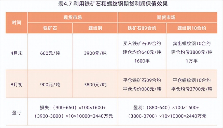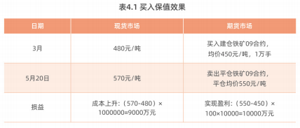 该企业通过期货买入保值,规避了铁矿石原材料价格上涨的风险,期货端盈利覆盖了现货端成本的上升。