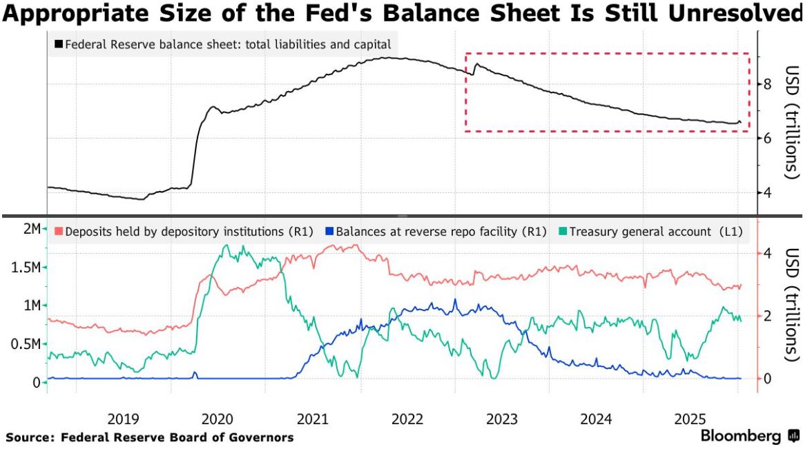 去年12月,由于银行准备金不再充裕的迹象日益明显,12.6万亿美元的短期货币市场压力信号加剧,美联储为此结束了持续三年多的缩表行动。