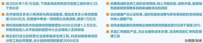 为继续实施适度宽松的货币政策,中国人民银行在2026年开年便先行打出结构性货币政策工具的“组合拳”。1月15日,央行在国新办新闻发布会上宣布,自1月19日起,下调各类结构性货币政策工具利率0.25个百分点,完善结构性工具并加大支持力度。