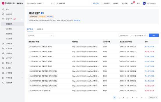 对于访问频繁的合法来源,可加入放行名单以避免误拦;而对恶意来源,系统将自动执行屏蔽与限制访问策略。