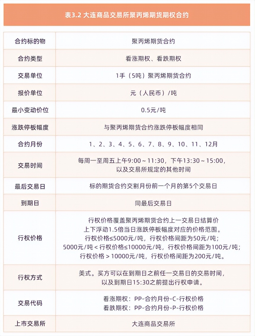场内期权又称为交易所期权,是指由交易所设计并在交易所集中交易的标准化期权。聚丙烯期权以聚丙烯期货为交易标的的期权品种,已于2020年7月6日在大连商品交易所挂牌上市。