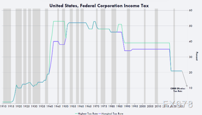 (法案发布后,美国企业税率预估趋势图)