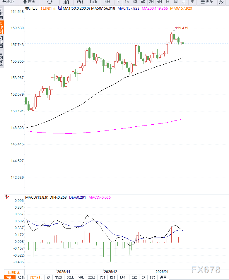 在美元方面,美国就业市场稳健令市场下调未来降息预期,美元因此获得支撑。部分投资者对2026年两次降息的押注有所回撤,这帮助美元兑日元避免更深跌幅。