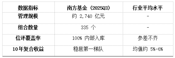 长期复利: 截至 2025 年三季度,南方基金企业年金过去十年的平均复合收益率持续跑赢行业基准。