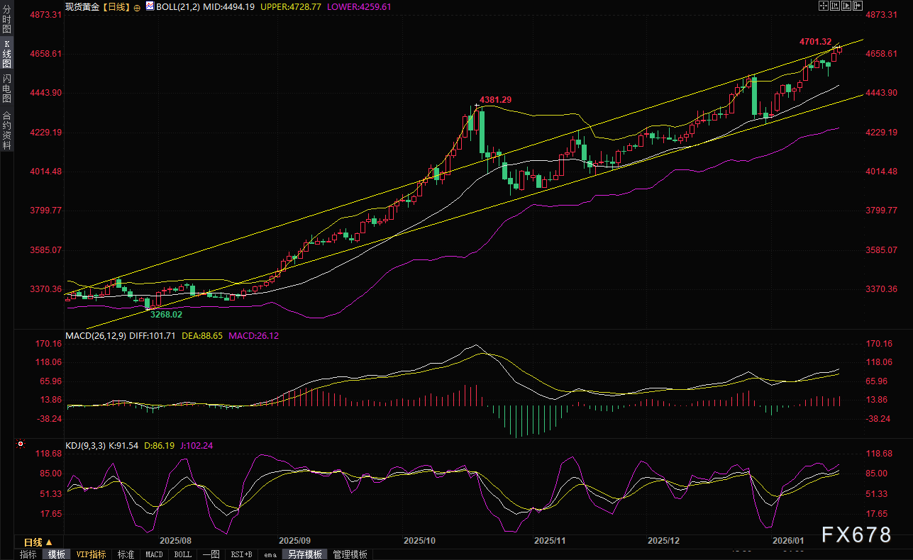 最新行情显示,金价在周二亚洲交易时段延续强势上涨势头,一度攀升0.65%至4701.32美元/盎司,刷新历史新高。这一涨幅主要受美欧贸易紧张局势升级、地缘政治不确定性加剧以及投资者避险需求激增推动,市场对潜在贸易战、通胀压力和美元走弱的担忧持续发酵,推动资金涌入黄金作为传统避险资产。