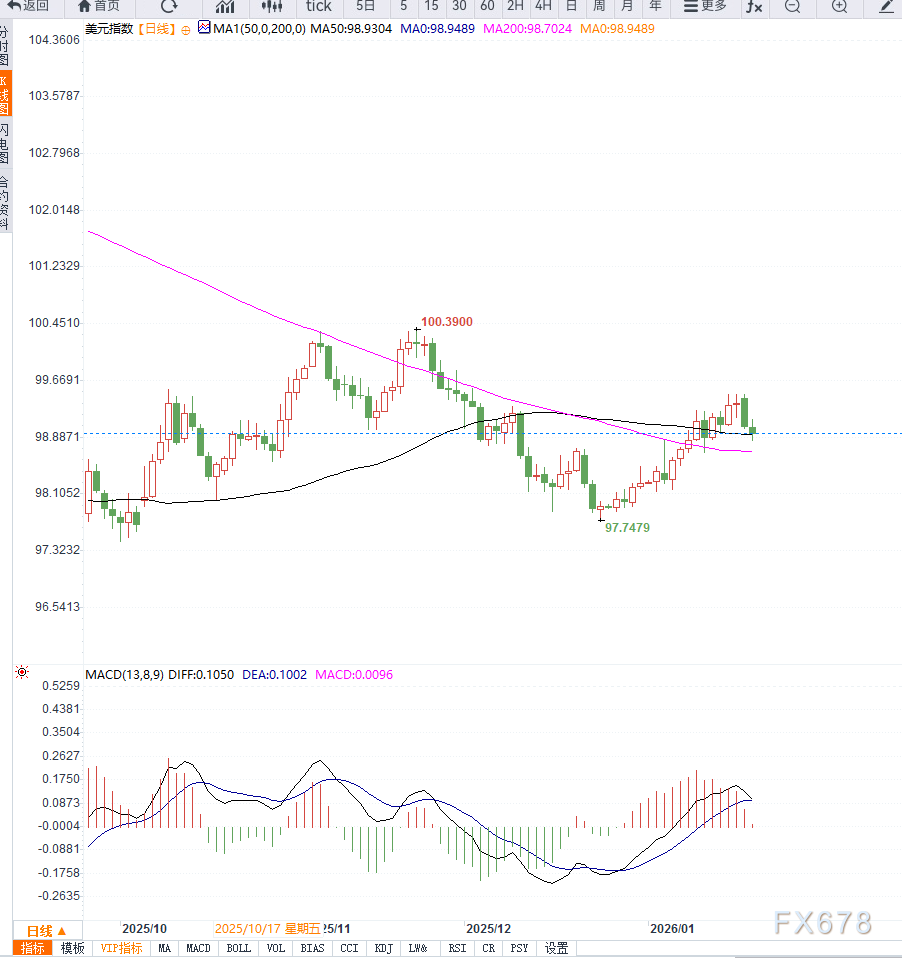 若指数有效跌破98.50一线,可能打开进一步下探至98.00附近的空间;反之,若重新站稳99.30上方,才有望缓解当前的下行压力并促使汇价进入整理阶段。