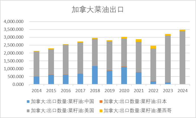 数据来源:加拿大油籽加工商协会 海关总署