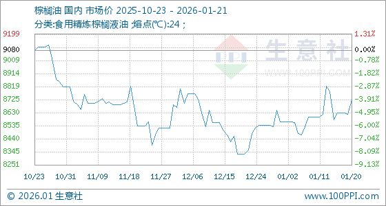 1月21日生意社棕榈油基准价为8724.00元/吨
