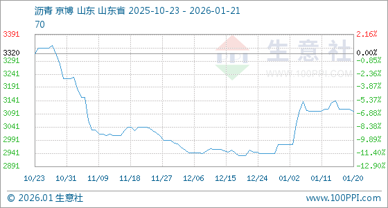 1月21日,生意社沥青基准价为3100.00元/吨,与本月初(2973.33元/吨)相比,上涨了4.26%。
