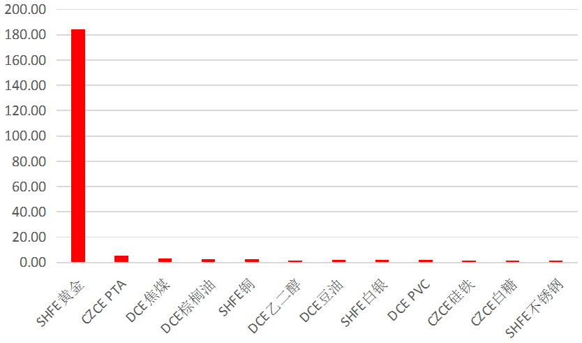 单品种看,昨日资金主要流入的商品期货(主连合约)品种有黄金、PTA、焦煤、棕榈油和铜,分别流入184.32 亿元、5.16 亿元、3.02 亿元、2.75 亿元和2.49 亿元;主要流出的品种有碳酸锂、铁矿石、生猪、橡胶和苯乙烯,分别流出27.55 亿元、6.65 亿元、3.99 亿元、2.60 亿元和2.08 亿元。从主力合约看,有色金属和金融呈流入状态,农产品、化工和黑色板块呈流出状态。