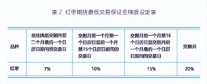 红枣期货合约的交易保证金标准实行四段制,具体标准见下表: