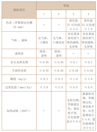 我国现行的压榨或浸出菜油质量标准执行《中华人民共和国国家标准菜籽油》(GB 1536-2004 )。