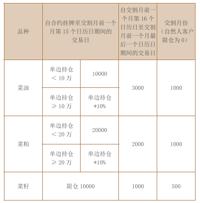 非期货公司会员及客户的菜籽、菜油、菜粕期货最大单边持仓限仓标准如下: