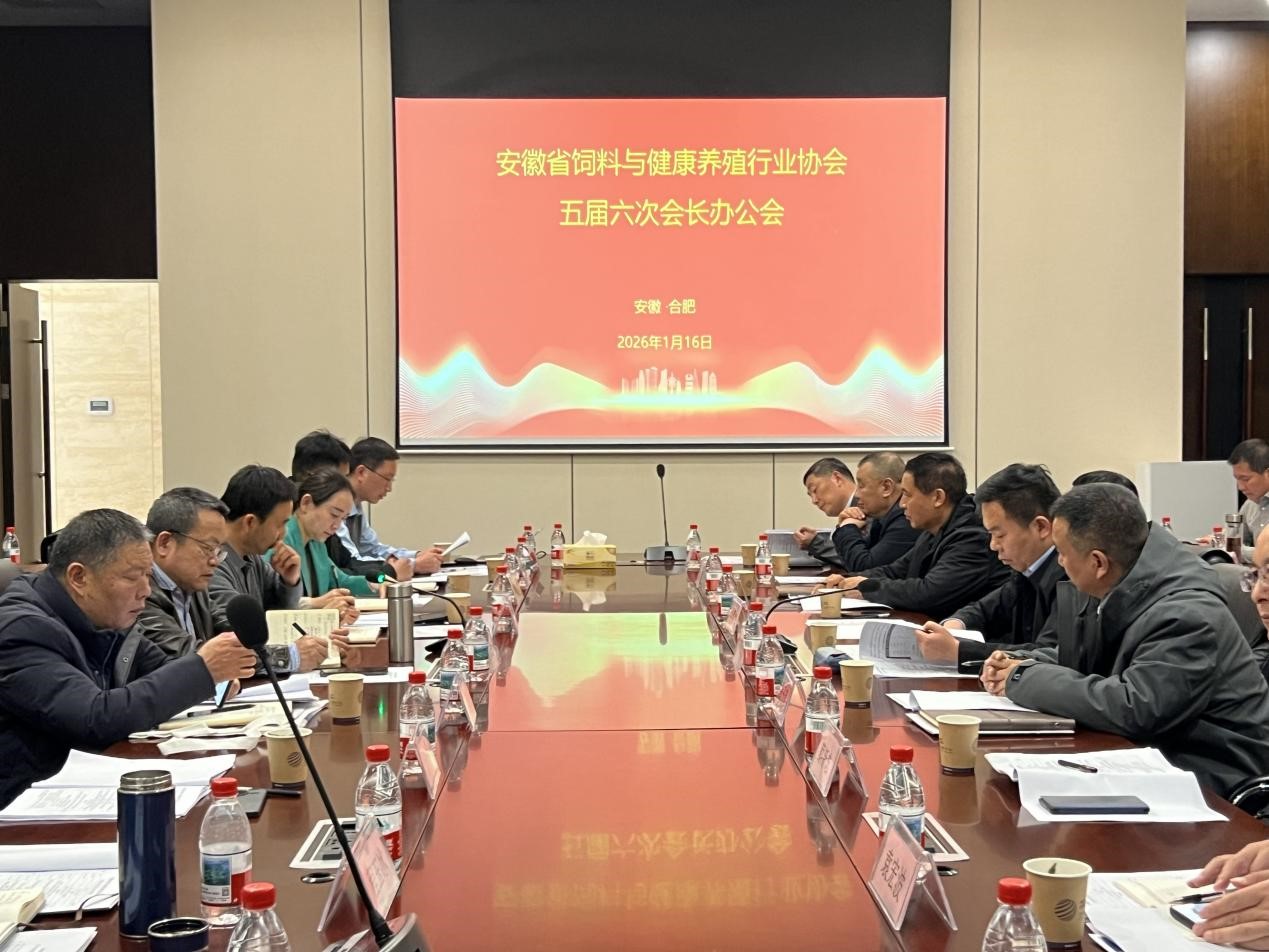 2026年1月16日,安徽省饲料与健康养殖行业协会五届六次会长办公会在安粮期货股份有限公司总部顺利召开。本次会议以“统筹行业发展、深化产融协同、夯实责任根基”为核心,全面总结过往工作成效,系统部署未来发展规划,同时依托安粮期货专业优势搭建金融赋能平台,为安徽省饲料与健康养殖行业高质量发展注入强劲动力。