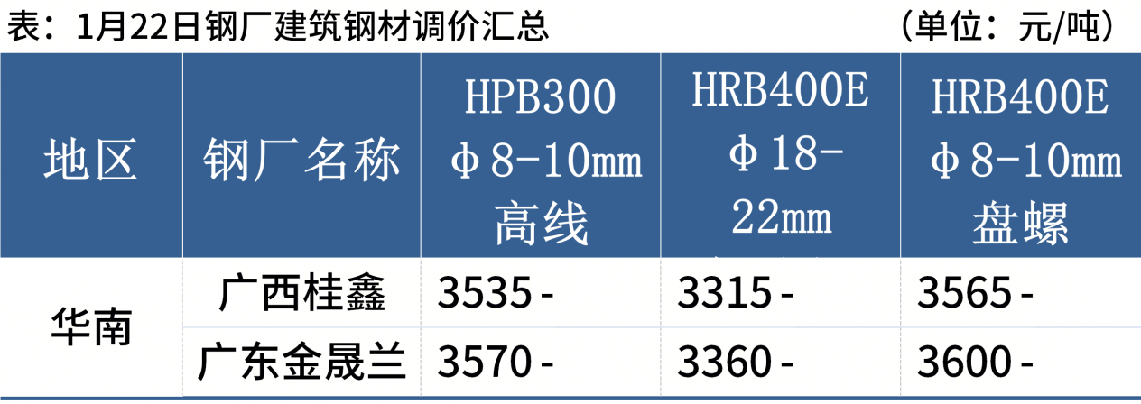 1月22日,钢厂建筑钢材出厂价持稳运行。