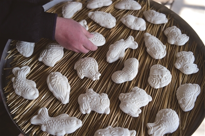1月22日,河北省沧州市海兴县张常丰村一家面花作坊的工人将面花装锅。进入腊月,沧州部分乡村的面花作坊进入生产旺季,人们忙着制作各种形状的面花供应市场。面花有鱼、寿桃、十二生肖等造型,经过揉面、搕花、晾花、蒸花等十多道工序制作而成。