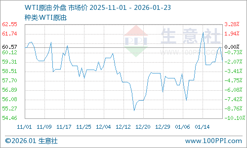 1月22日,国际原油期货收跌。美国WTI原油期货3月合约结算价报59.36美元/桶,跌幅1.26美元或2.1%。布伦特原油期货4月合约结算价报63.34美元/桶,跌幅1.19美元或2.0%。
