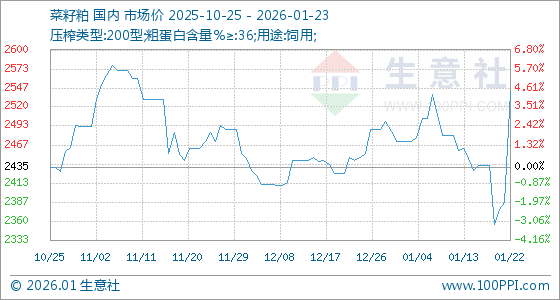 1月23日生意社菜籽粕基准价为2542.00元/吨