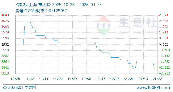 1月23日生意社冷轧板基准价为3837.50元/吨