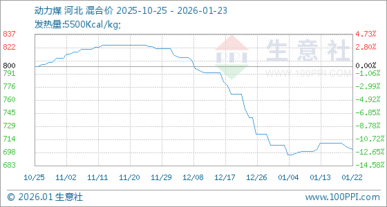 1月23日生意社动力煤基准价为702.50元/吨