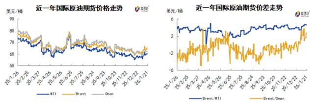 周内,市场消息喜忧参半,中东地缘局势方面,周内前期,美伊局势紧张对油价起到支撑作用,伊朗警告称,若美国干预其国内抗议,将打击美国在中东盟友的基地。一名美国官员透露,鉴于地区紧张加剧,美国正从关键基地撤出部分人员以防万一。但周内后期,伊朗通过镇压平息了抗议活动,此前特朗普推迟军事行动的发言也降低了美国军事打击这一主要产油国并扰乱其供应的风险,投资者对美伊局势持观望态度导致油价承压。特朗普表示,他已从伊朗处获悉杀戮已经停止,白宫将密切关注事态发展,鉴于伊朗承诺不会处决抗议者,美方或暂缓对伊动武。