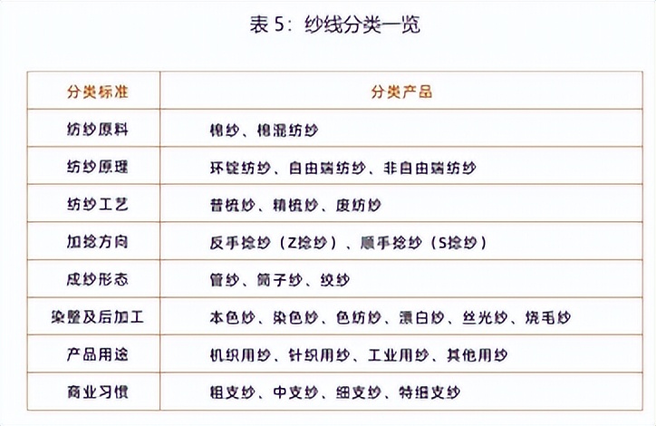 Vi)按商业习惯,分为粗支纱、中支纱、细支纱和特细支纱