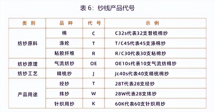 (3)纱的品种代号