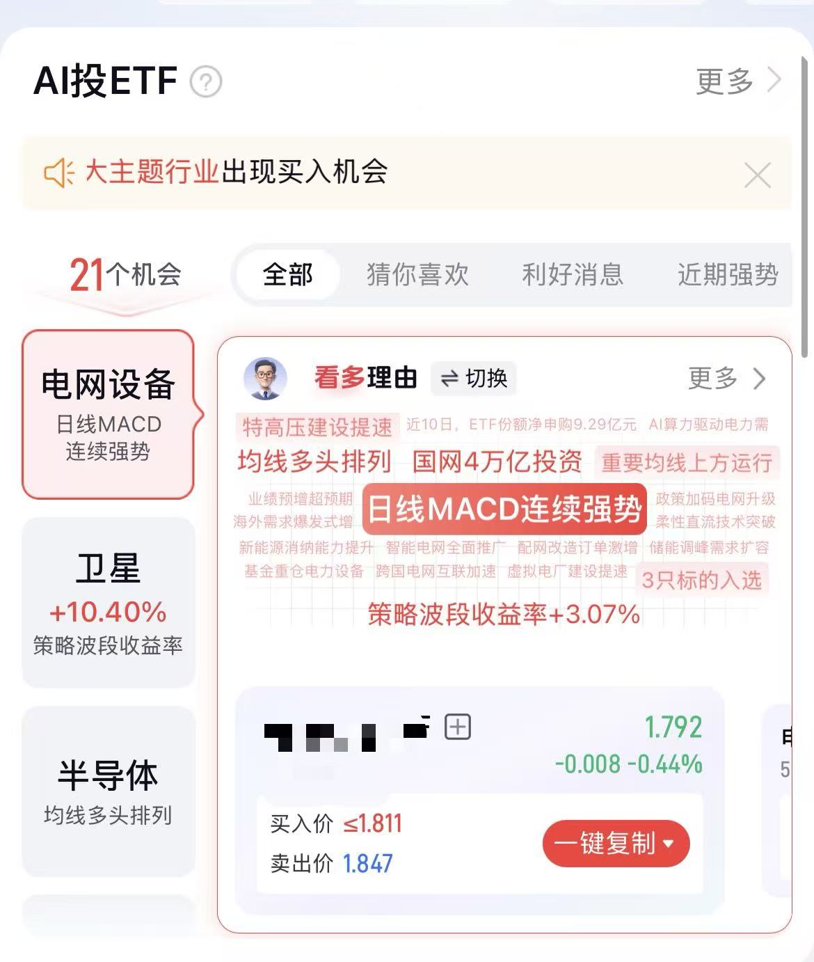 国金佣金宝APP的网格交易条件单,云端运行无需盯盘,AI智能选股加上一键复制功能,让你的交易策略24小时自动执行。