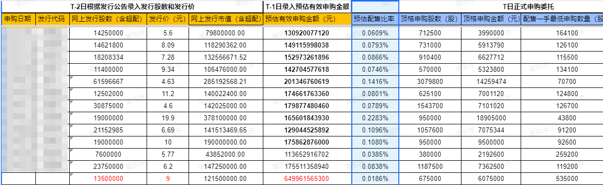 全市场总申购100亿股,配售比例为0.1%