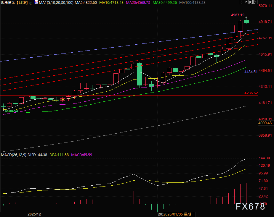 汇通财经APP讯——周五(1月23日)亚欧时段,现货黄金小幅冲高回落,整体成窄幅震荡态势,守住周四大部分涨幅,周四黄金受格林兰岛和美欧关税问题缓和影响一度跌1.5%但纽约时段重启升势最终收涨2.18%。
