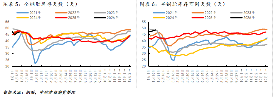 接下来,我们尝试去推断BR橡胶这张平衡表的一些问题。从需求开始,根据隆众资讯的数据,截至1月22日,中国半钢胎样本企业产能利用率为73.84%,环比+1.31%,同比+8.92%;中国全钢胎样本企业产能利用率为62.53%,环比-0.49%,同比+22.14%。半钢胎样本企业平均库存周转天数在48.53天,环比+0.61天,同比+5.00天;全钢胎样本企业平均库存周转天数在46.8天,环比+0.70天,同比-0.92天。首先,从国内下游行业的生产和库存水平来看,近期国内下游行业的生产并没有迎来能够完美匹配行情的生产大幅扩张,尤其是在临近国内农历春节的时间节点上(海外大部分国家并没有过农历春节的习俗,参考新加坡TSR20近期的表现,并没有出现流畅的单边上行,故大致推断海外轮胎企业的生产亦没有出现大幅扩张);其次,从更终端的轮胎消费来说,由于缺乏高频数据,也由于基于当下的(全球)经济现状,轮胎消费激增的判断在当下很难成立。因此,本轮行情的归因很难总结为“因为下游需求激增,推动BR橡胶单边快速上行”。