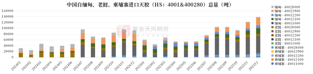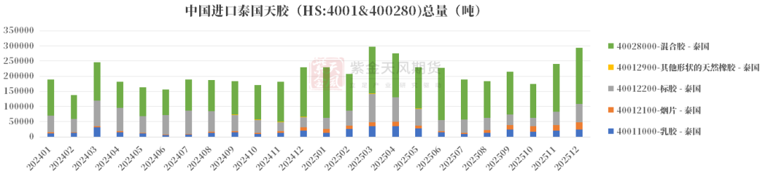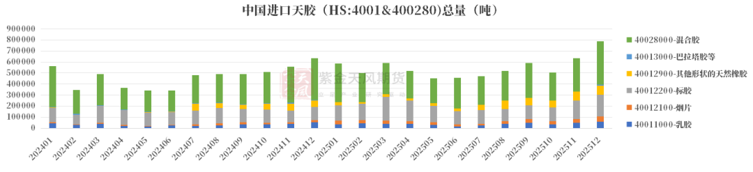 不仅是12月,2025年全年进口印尼混合胶数量提升,有可能是部分胶种切换成了混合胶进口。