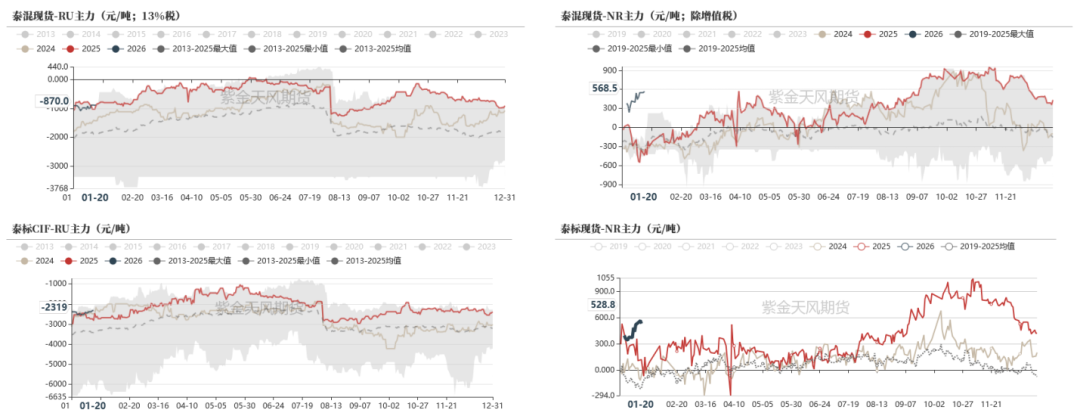 截至1月20日,泰混-NR价差为+568.5元/吨,较上周+377元/吨。