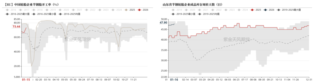 截至1月15日数据显示,全钢胎样本企业平均库存周转天数46.1 天,环比增加1.48天。