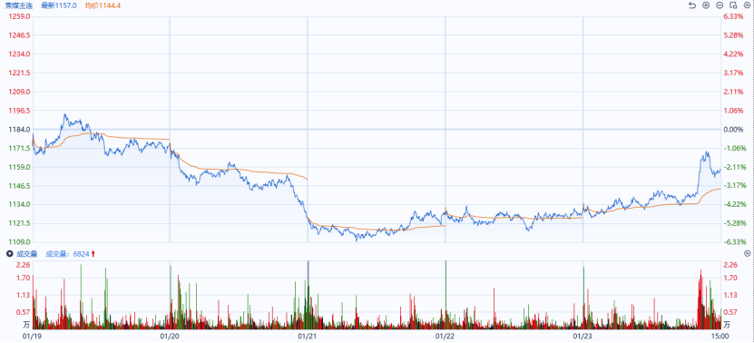本周焦煤期货主力合约(JM2605)呈现“冲高回落-低位反弹”走势。