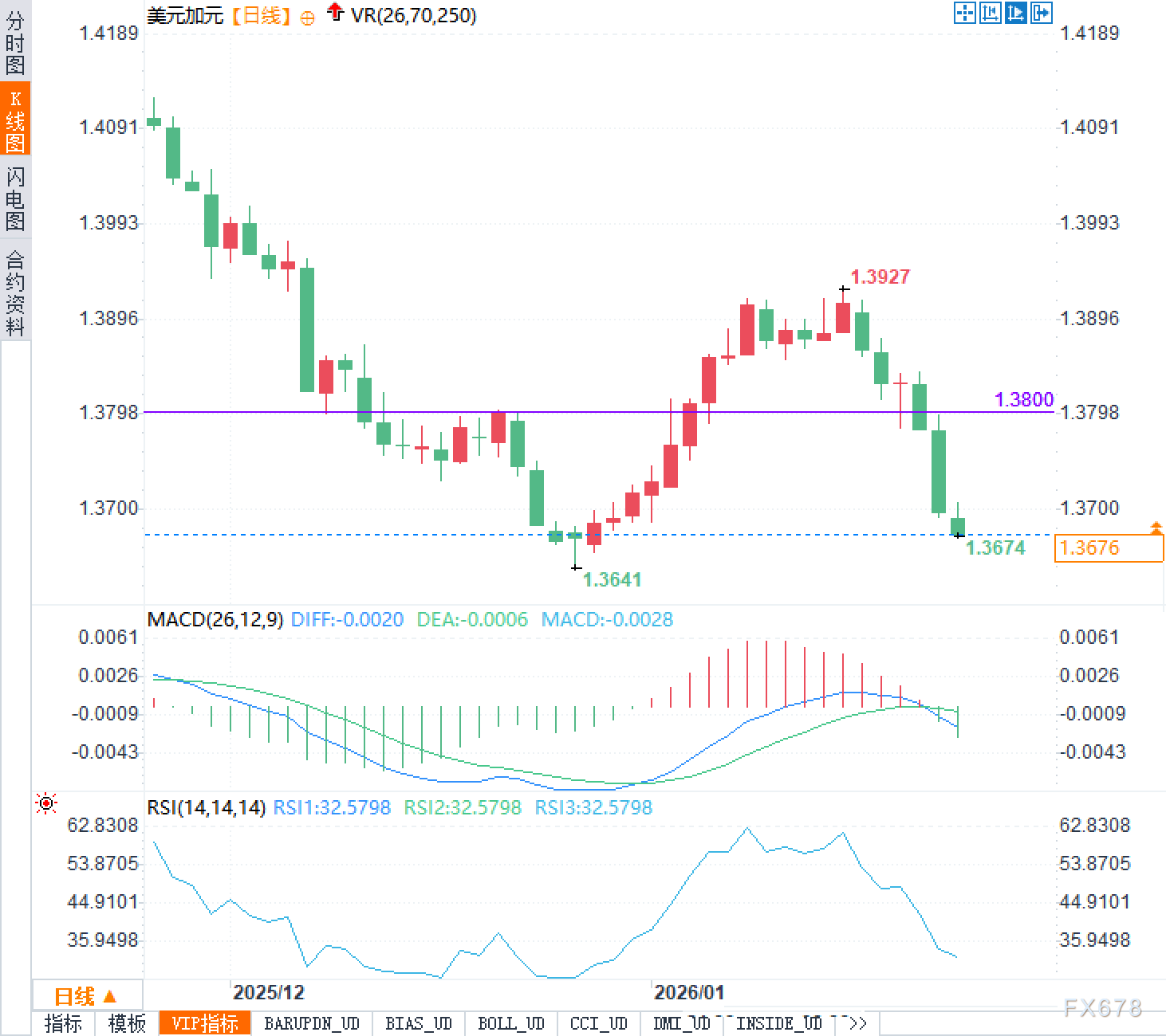 汇通财经APP讯——1月26日周一,美元兑加元欧洲时段交投1.3680附近,正处于近期回落通道的下沿区域。目前行情既没有明显反转的信号,也未出现单边加速下跌的动能,更像是在等待关键变量揭晓前的“静默期”。这种僵局的背后,是多重因素交织影响的结果:央行政策预期、能源价格走势以及地缘贸易风险轮番登场,让交易员不敢轻易押注方向。
