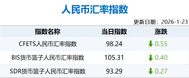 【市场速递】1月23日人民币汇率指数