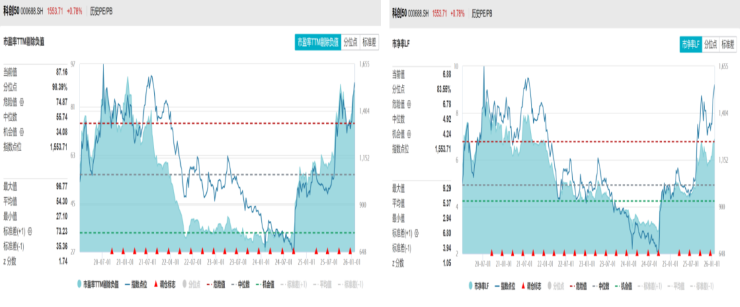 科创50注册制以来估值剔除负值PE分位数98%,PB分位数84%,处于高位的水平。