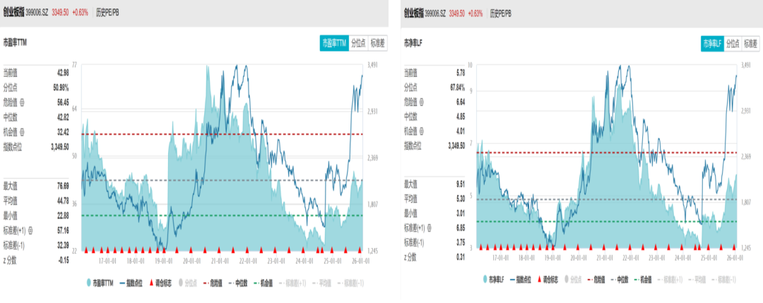 创业板指注册制以来估值PE分位数50%,PB分位数68%,处于中位的水平。
