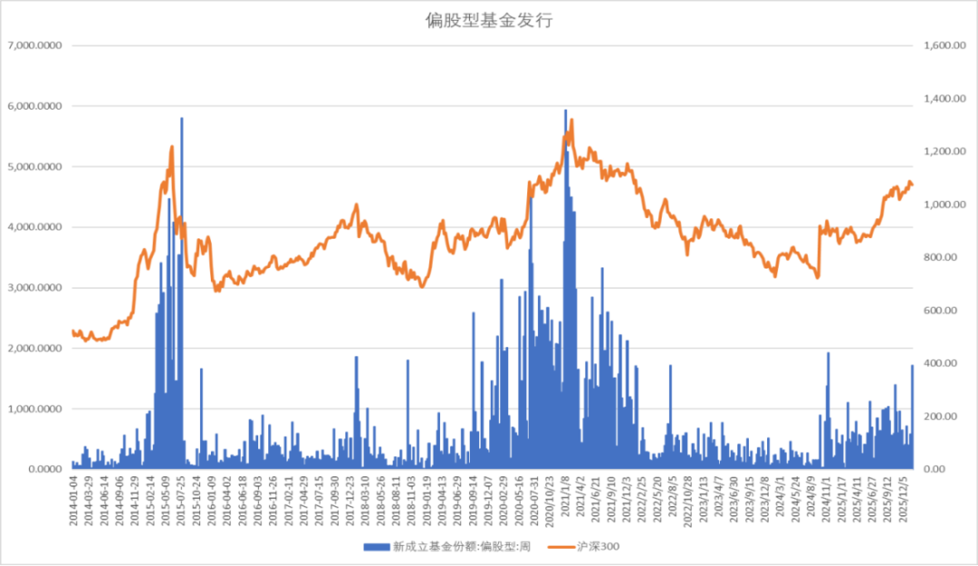 新成立偏股基金发行规模上周增393亿,股票基金发行大幅增加。