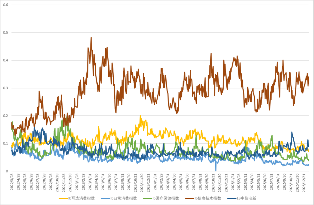 新经济行业中信息技术、电力新能源成交占比维持活跃,日常消费、可选消费、医疗保健维持低迷。