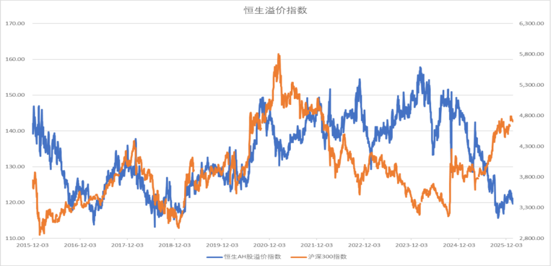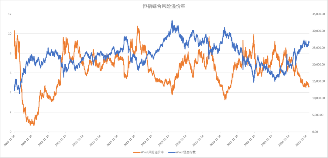 10年期美债利率4.24%,恒生指数以中美10年期国债平均收益率计算风险溢价率偏低,恒指偏贵。
