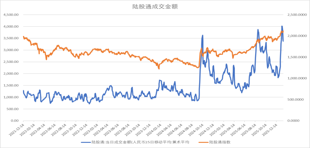 陆股通成交量迅速缩小,但相对占比仍在下降,显示内资仍是增量的主流。