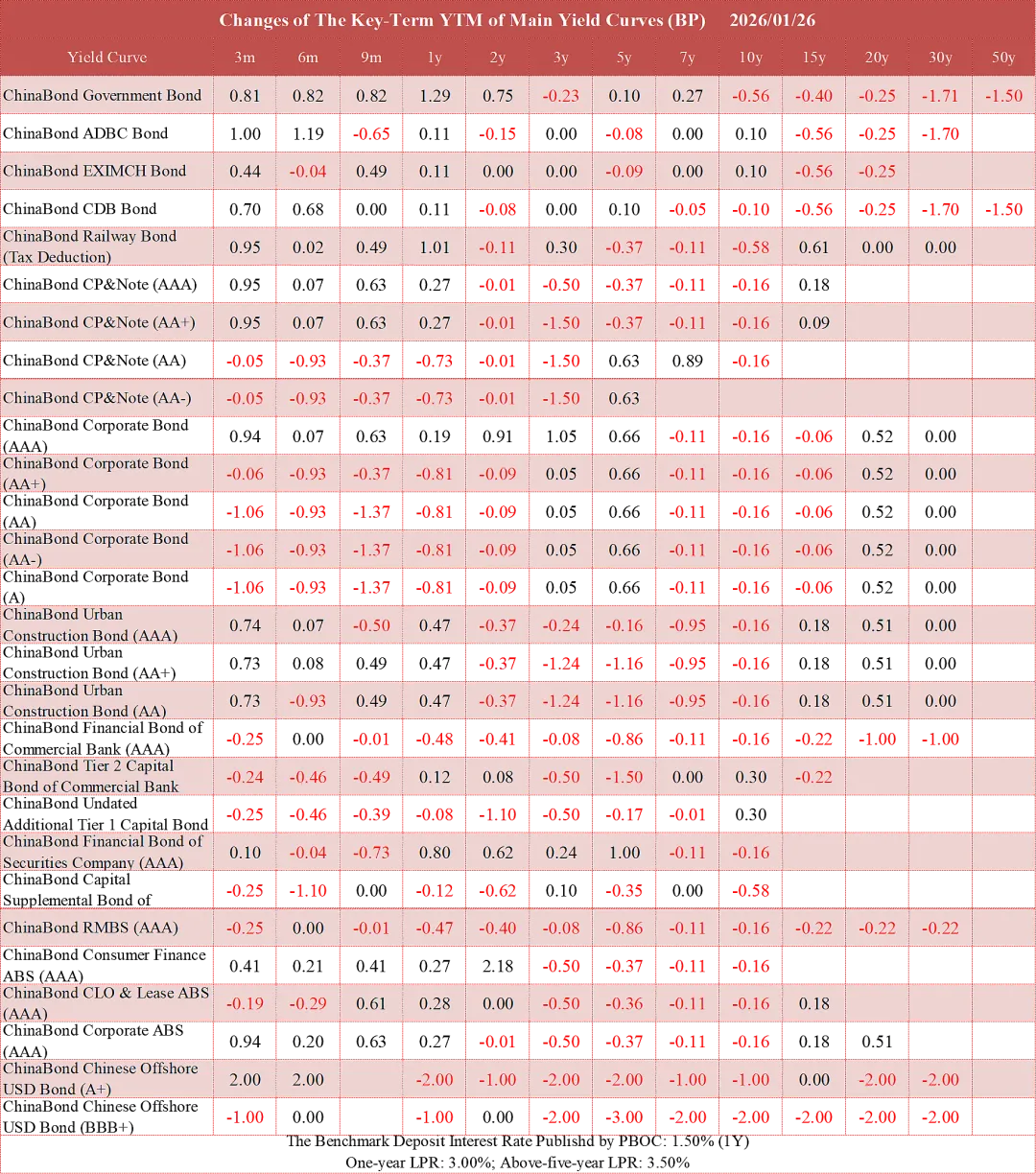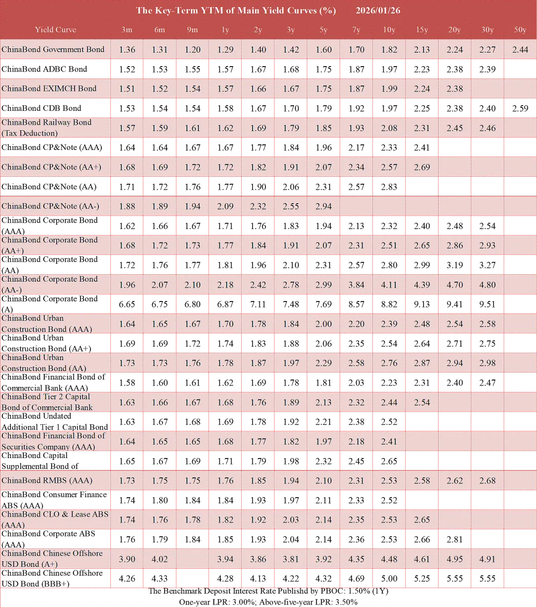 1. The ChinaBond yield curves of corporate bonds are based on ChinaBond Market Implied Rating.