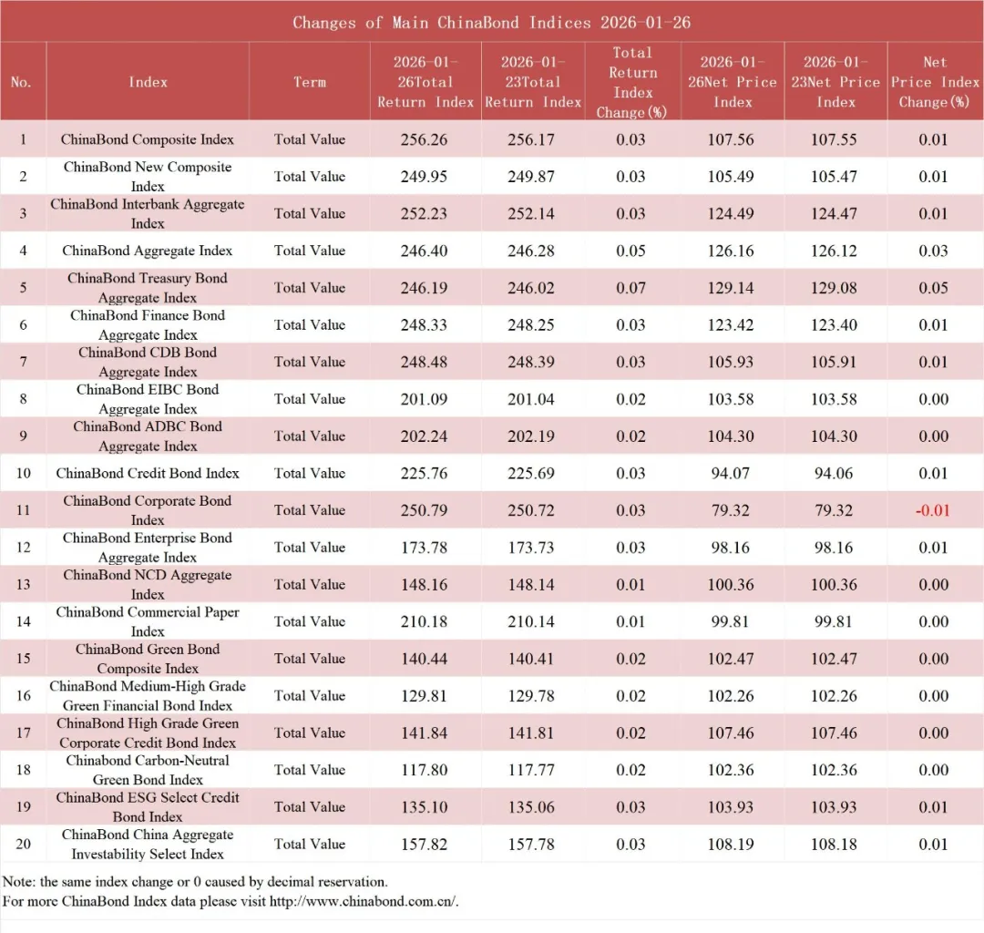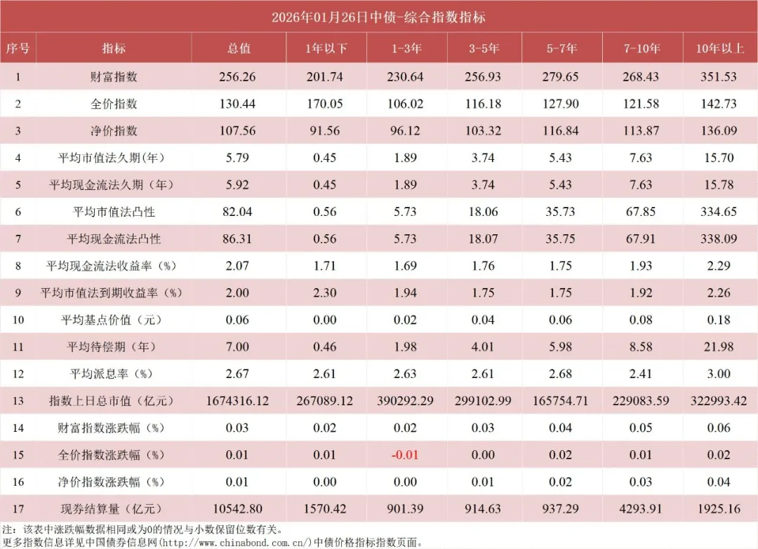 债市值言:中债收益率曲线和指数日评2026年1月26日