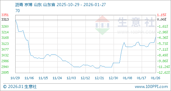1月27日生意社沥青基准价为3180.00元/吨